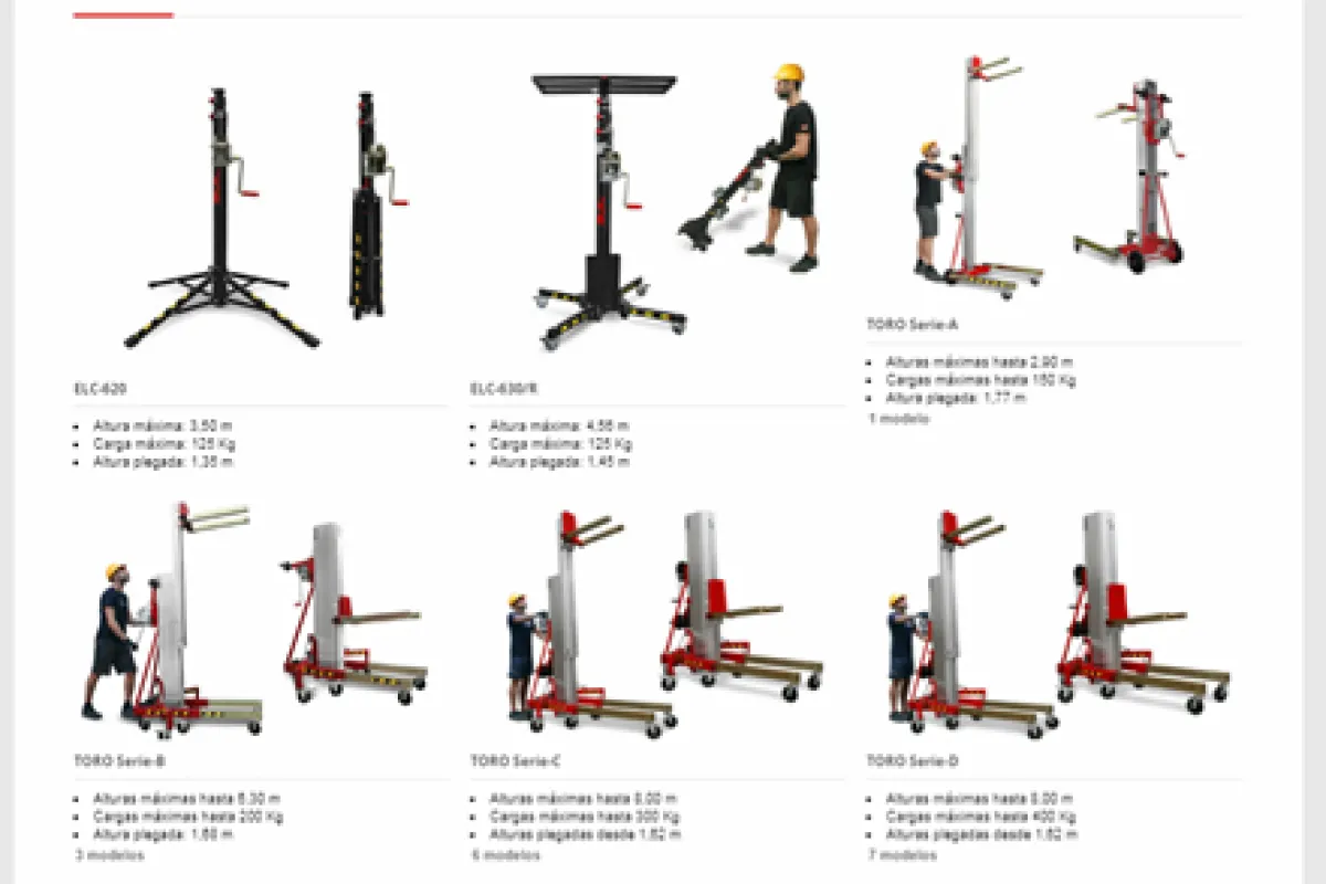 - Empresas de Construcción / Iluminación: Manipulación de materiales, Paletizados, Rótulos luminosos, Pantallas/Carteles