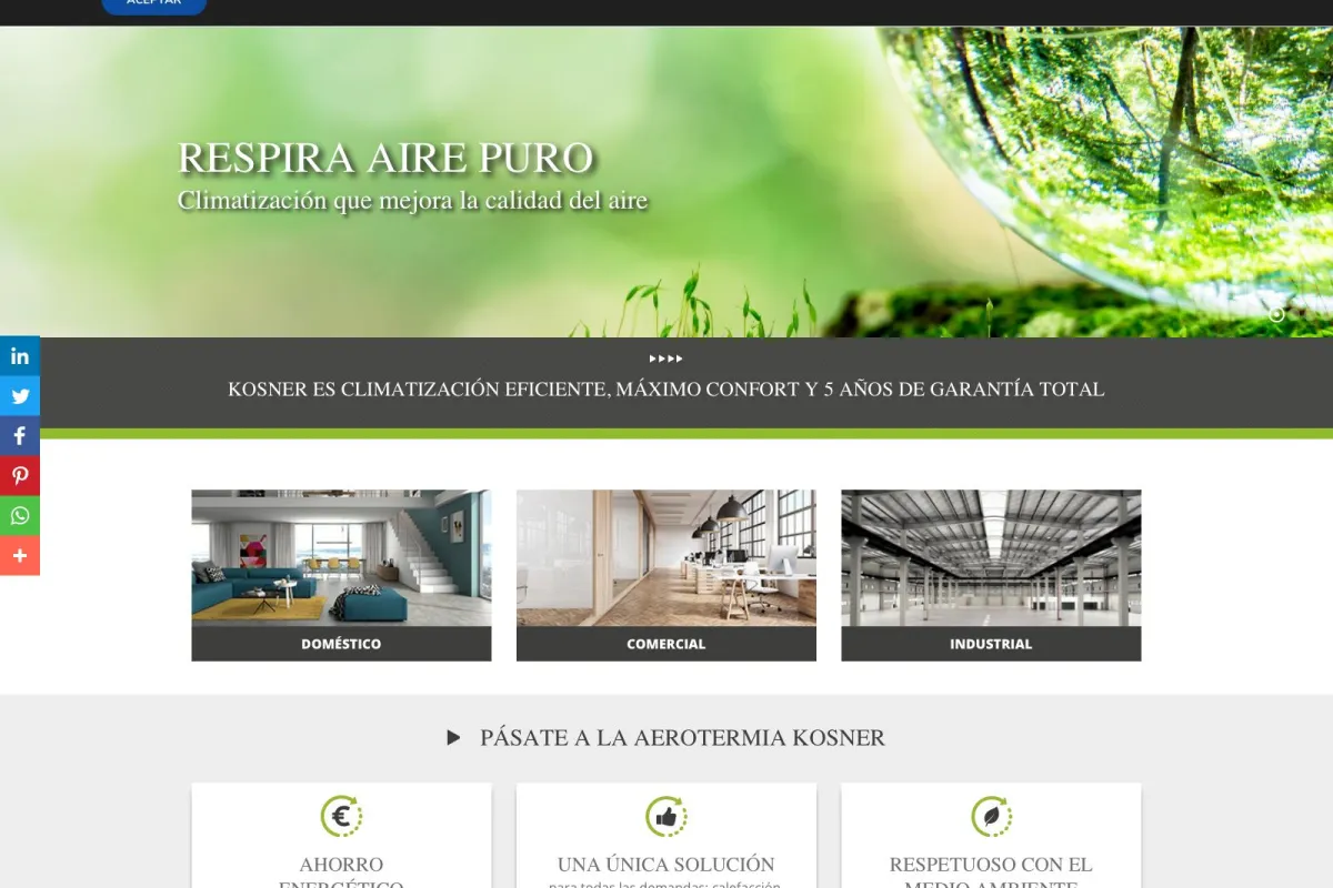 Kosner, aire acondicionado profesional para hogar, oficina e industria. Splits, portátiles, multi combis y purificadores de aire para la gama doméstica y soluciones 1x1, twin invertir y centrífugas inverter en la gama de comercios y oficinas.
