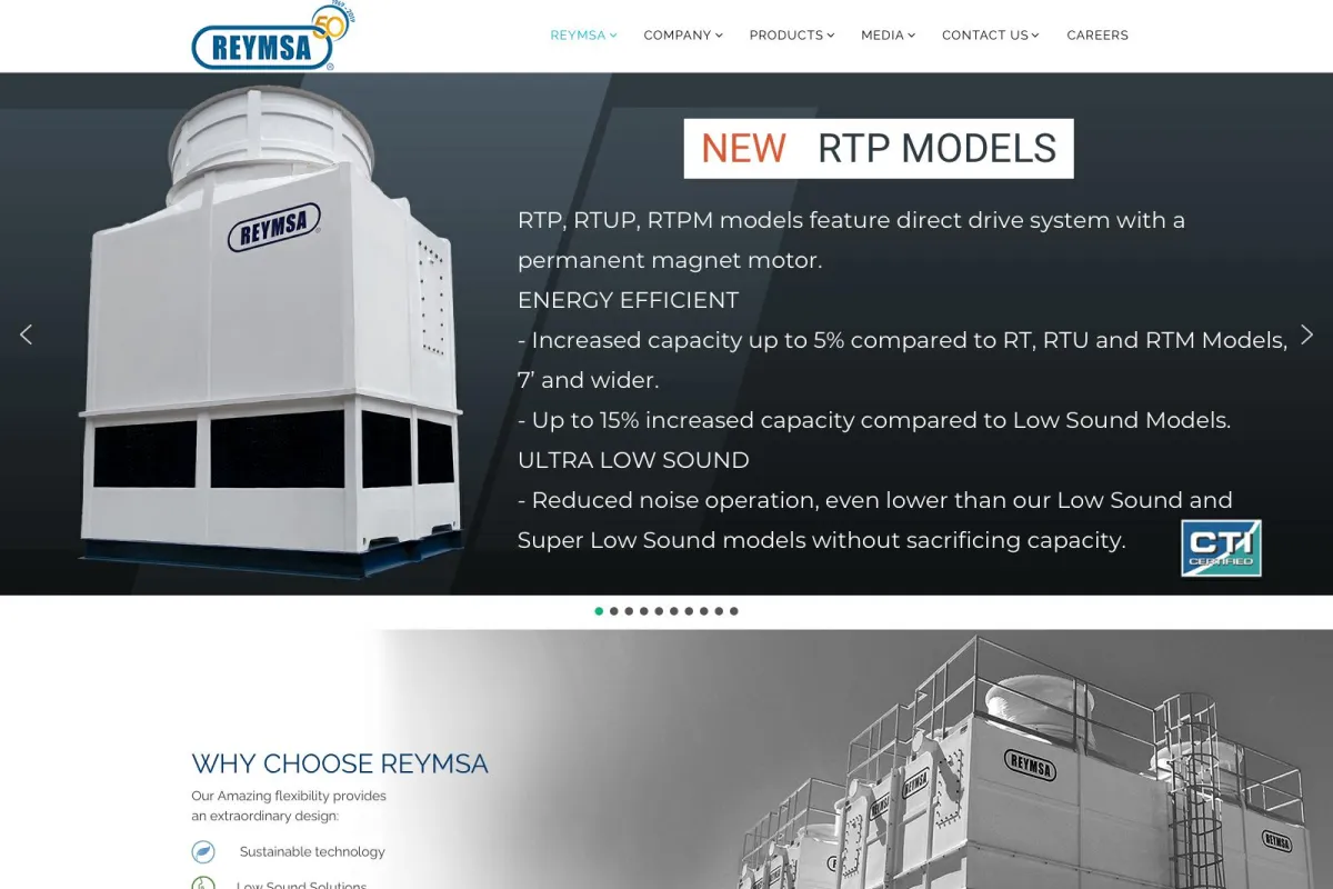 REYMSA Cooling Towers lleva en el negocio de las torres de enfriamiento desde hace 50 años y ofrece la mejor torre de enfriamiento no corrosiva del mercado. Todas sus torres están certificadas por CTI Thermal Performance. La combinación de su exclusiva carcasa patentada de una pieza y el uso de la tecnología más avanzada hacen que las torres de REYMSA sean algunas de las mejores disponibles en el mercado.