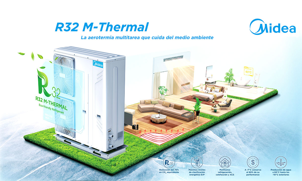 Midea - 28/05/2020 - 13:48Midea presenta su nueva gama de aerotermia M-Thermal R-32 para agua caliente sanitaria (ACS) y climatización tanto en modo frío como en modo calor.